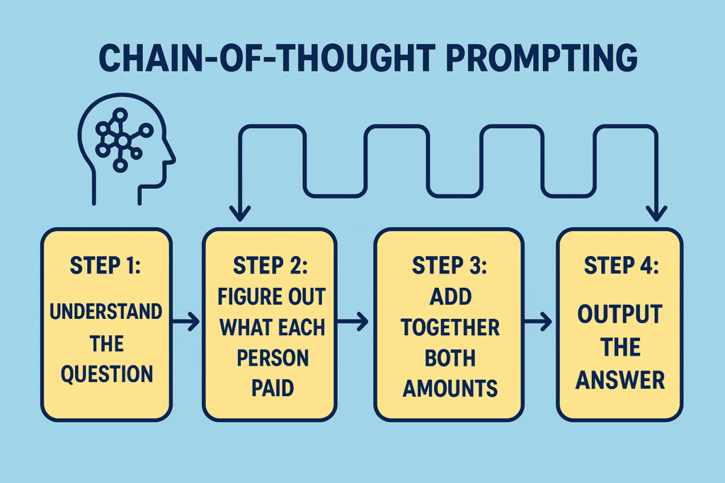 Chain-of-thought (CoT) prompting encourages the model to reason through a problem step-by-step before arriving at an answer. This technique enhances the model’s performance on complex tasks.